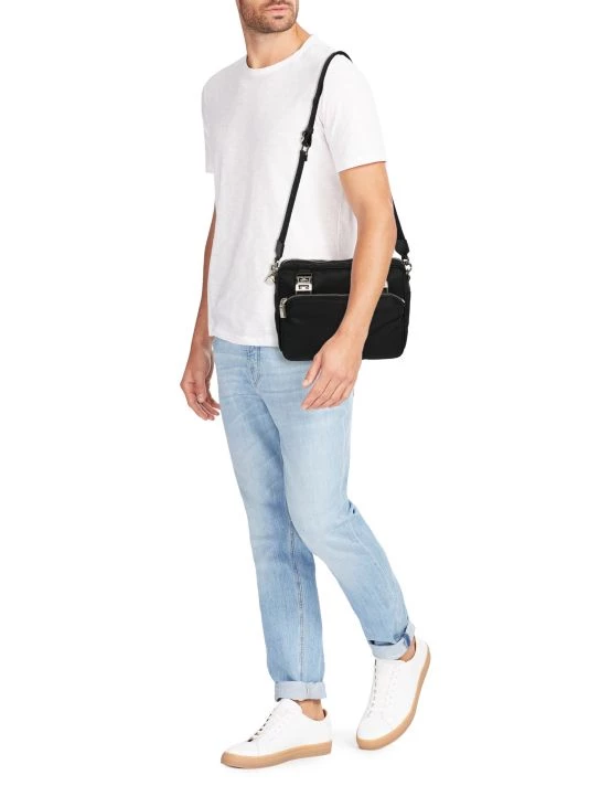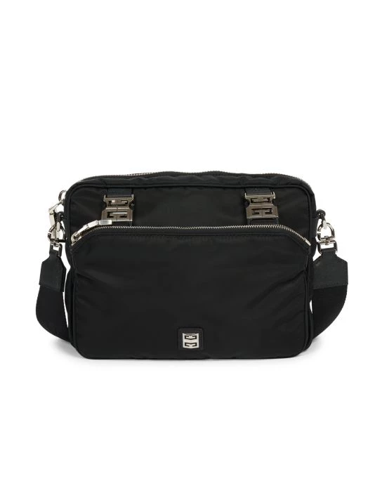 Lightweight nylon is crafted into this utilitarian messenger bag, featuring dual 4G clip-buckled straps that attach a front zip pouch.