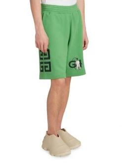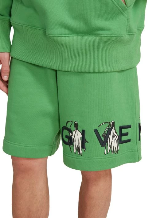 Crafted of cotton, these shorts sport the brand name embroidered on the left leg and the brand logo embroidered on the right.