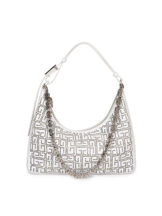 Givenchy’s Moon Cut Out bag is crafted of leather with an allover 4G logo motif and a G Cube chain strap.