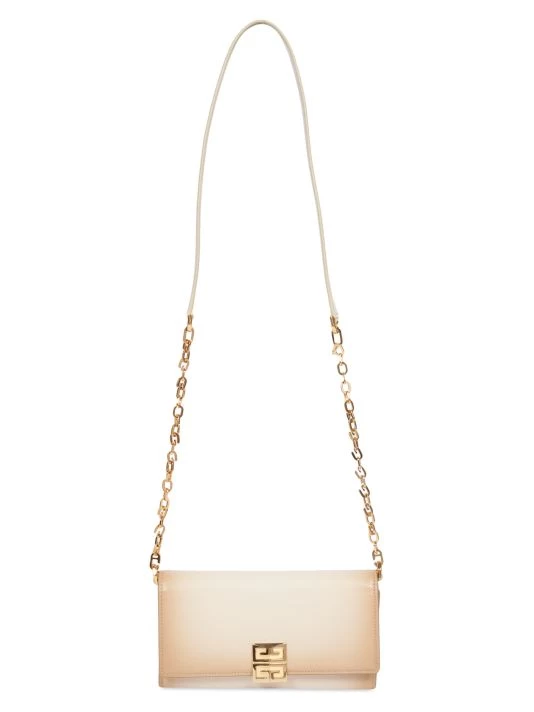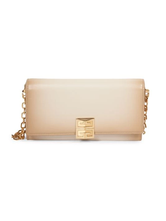 Crafted with a sleek, streamlined shape, this leather wallet features unique ombré coloring and a glossy chain strap.