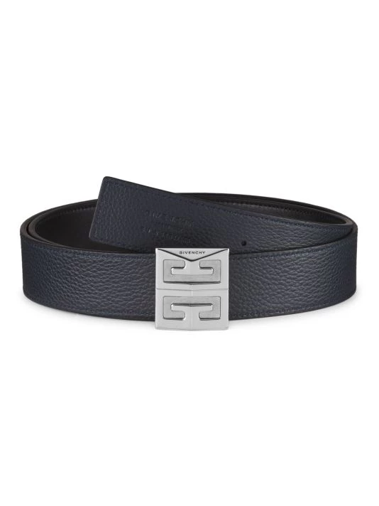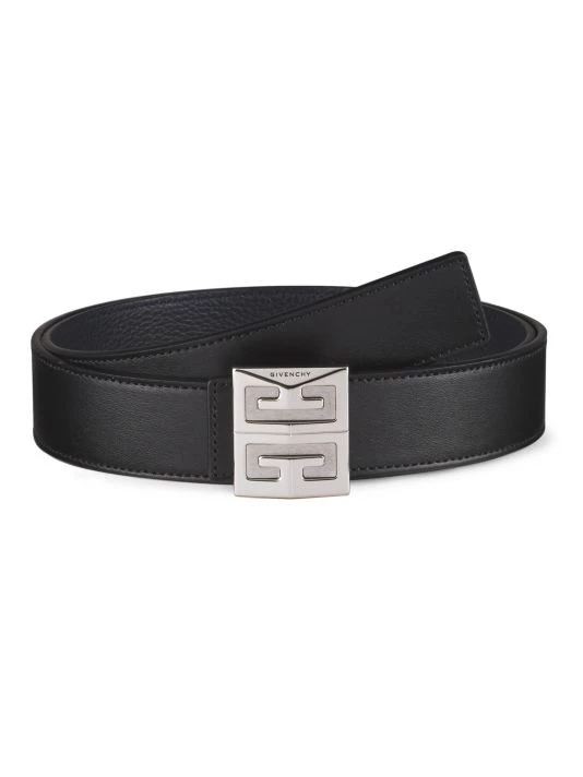 This leather belt is enhanced with a silvertone logo buckle and features a reversible design, with a smooth finish on one side and a pebbled finish on the other.