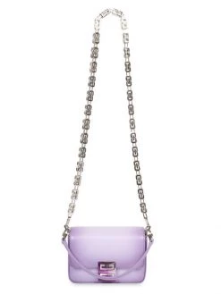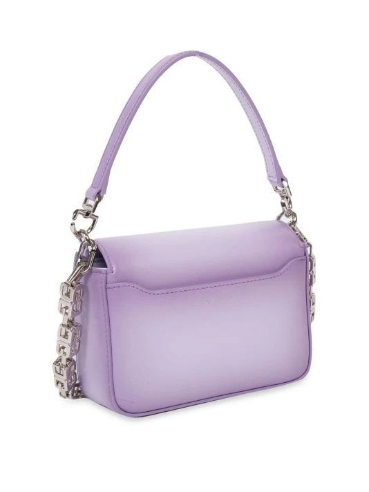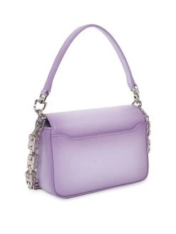 A cube-shaped logo chain strap embellishes this sleek glossy leather crossbody bag, designed with unique ombré coloring.