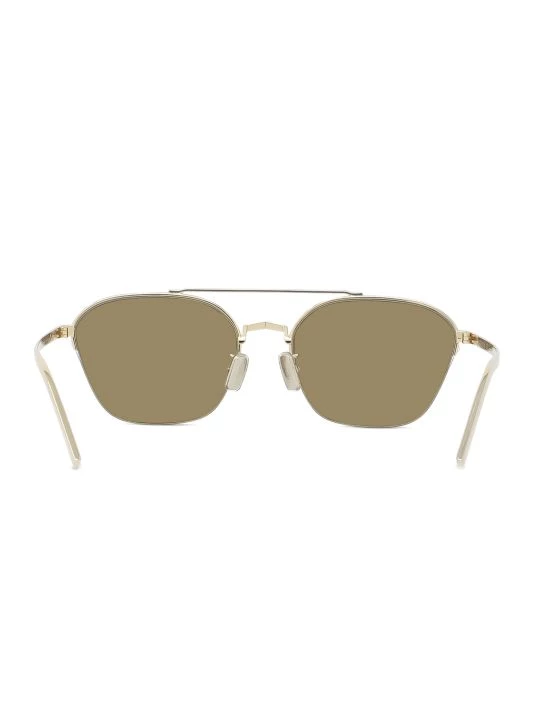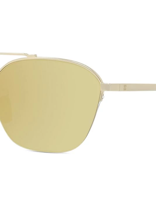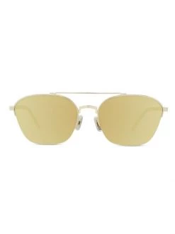 Creative Director Matthew M. Williams experiments with complex silhouettes and impactful details in this collection. A collaboration with New York artist Josh Smith introduces vibrant abstract prints and color to Givenchy’s repertoire. These aviator sunglasses in shiny gold metal is advanced with gold mirror lenses.
