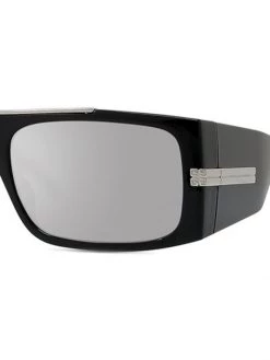 Rectangular shiny black nylon sunglasses with mirrored lenses.