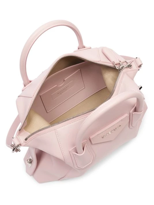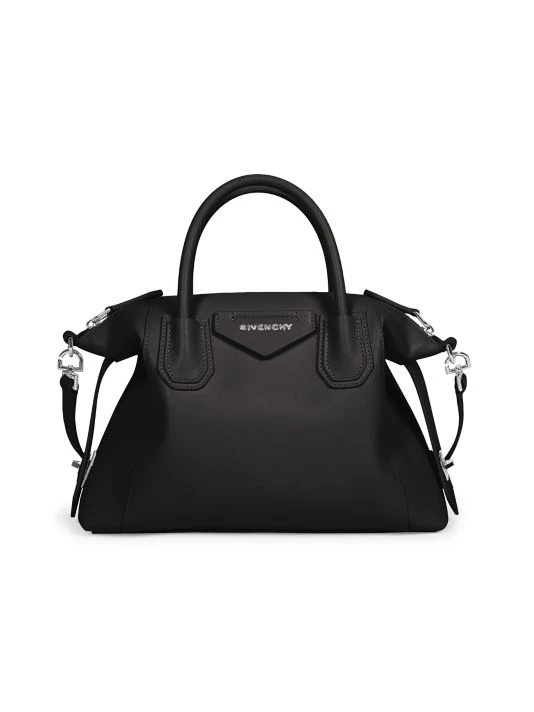 Defined by signature geometric construction, this soft leather bag has a roomy silhouette.