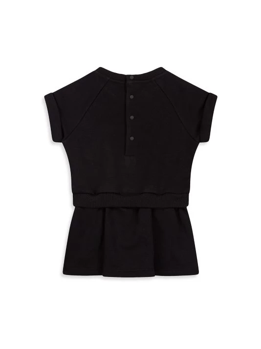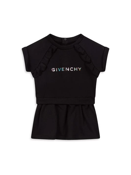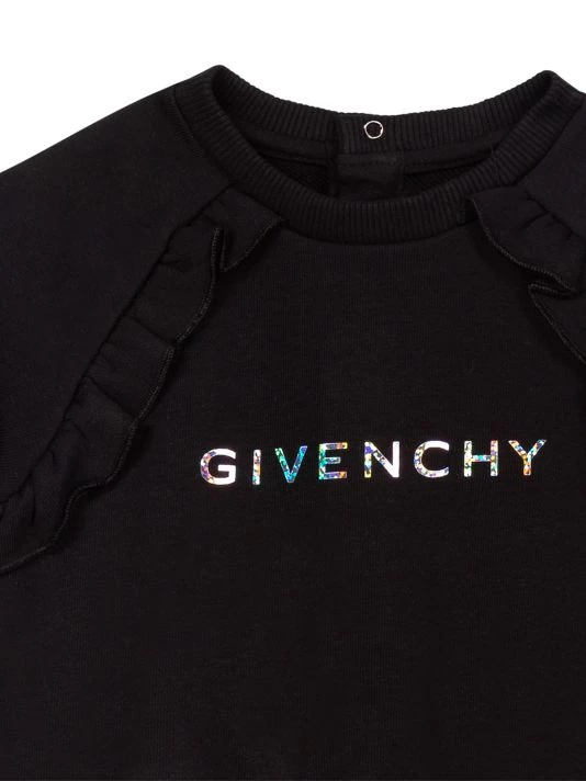 A holographic logo and ruffle detail at the seams enhance this cotton fleece dress.