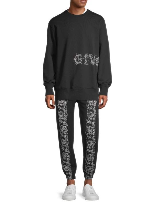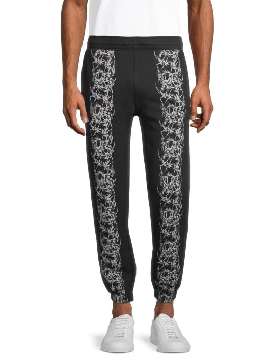 Made of cotton, these sweatpants feature a printed barbed wire design and side slip pockets.