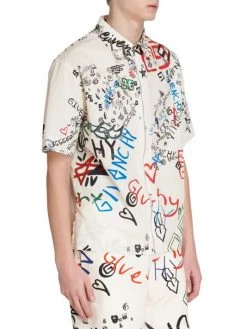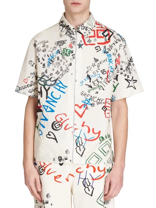 This boxy fit shirt from Givenchy showcases a notebook sketch print.