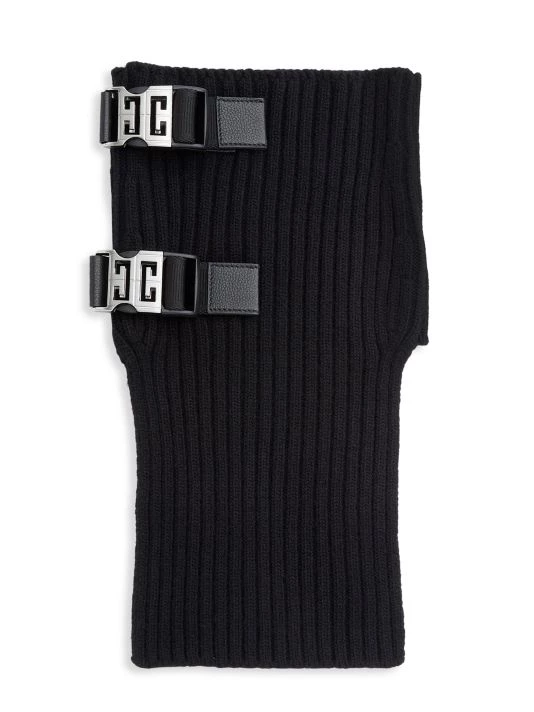 Crafted of a wool and cashmere blend, this knit neck scarf by Givenchy is adorned with two signature buckles lending an industrial vibe to the piece.