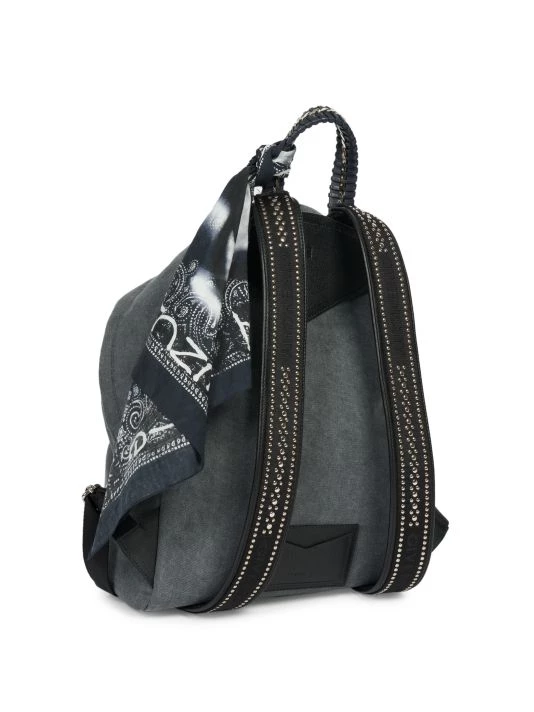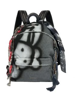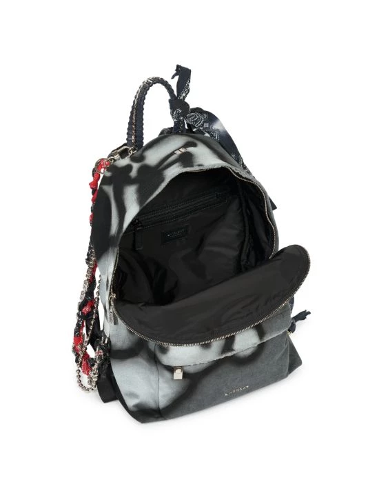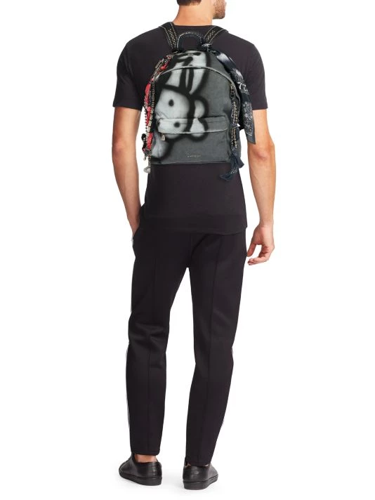 Dramatic chain embellishing imparts a raver-inspired sensibility to this painted backpack, designed in collaboration with Chito.