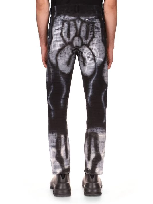 Made of cotton, these jeans feature a clown print on the front and a classic five-pocket style.