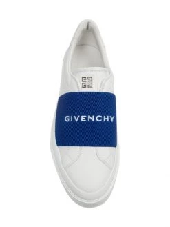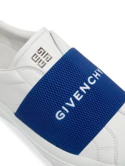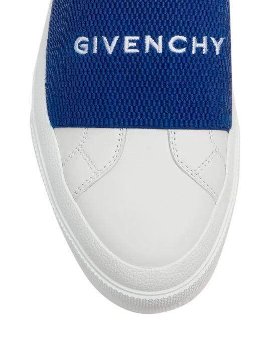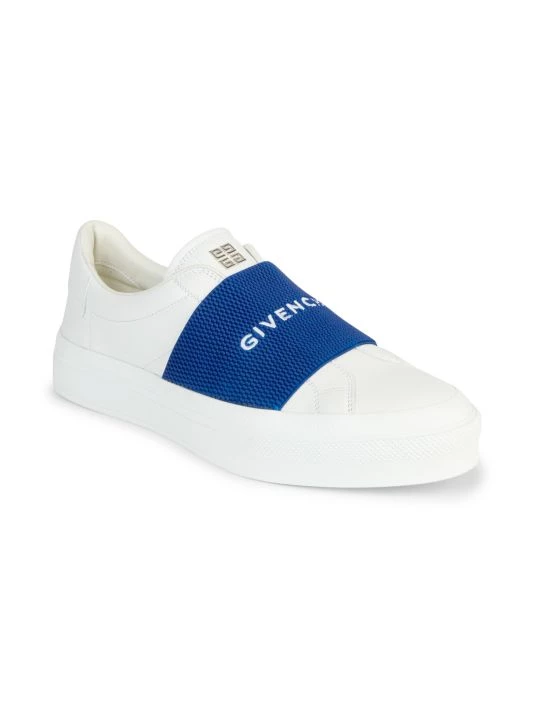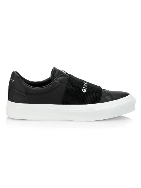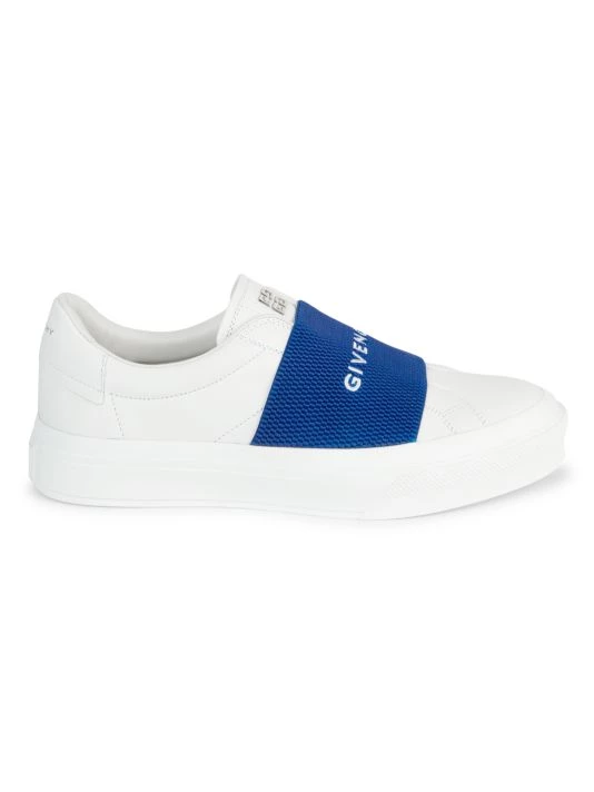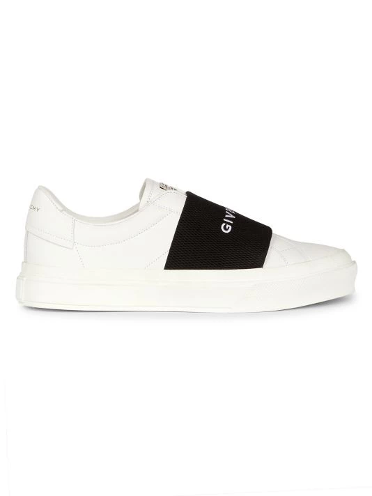 An elastic logo-embroidered strap tops these sleek leather sneakers, designed with a minimalist silhouette.