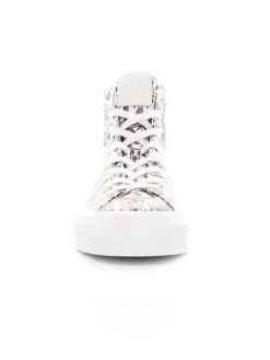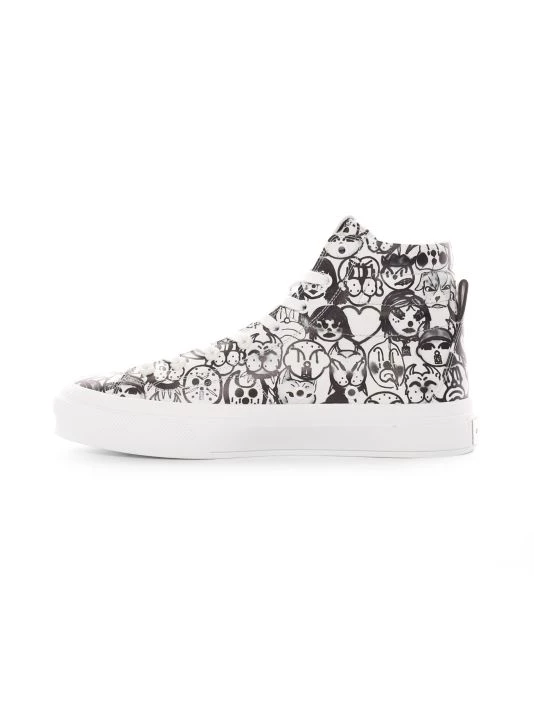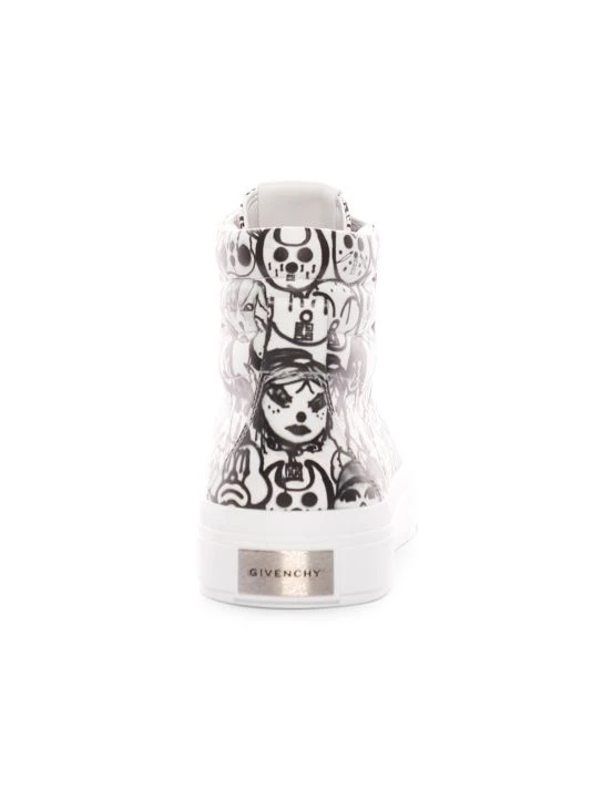 Italian leather high-top sneaker dressed in allover graphic motif is finished with Givenchy’s logo plaque at the sole.