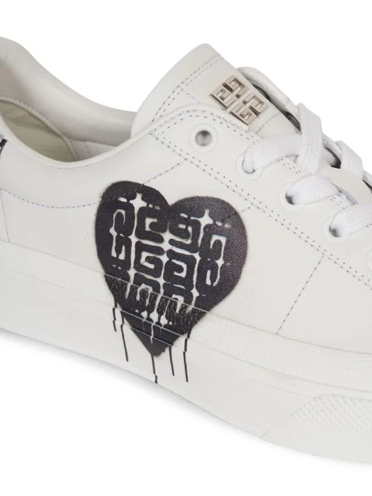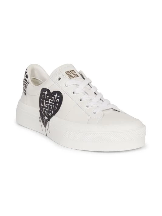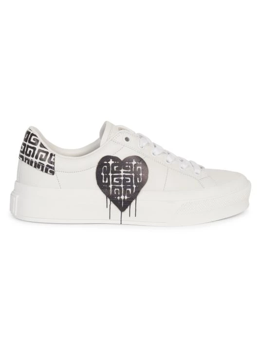 Classic low-top sneakers crafted of rich leather, featuring graffiti logo at counter, heart-shaped motif at sidewall and 4G hardware at tongue.