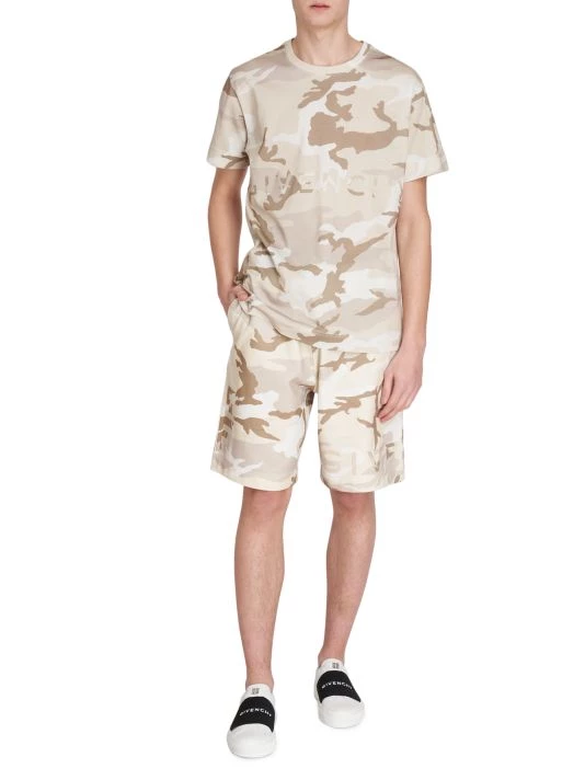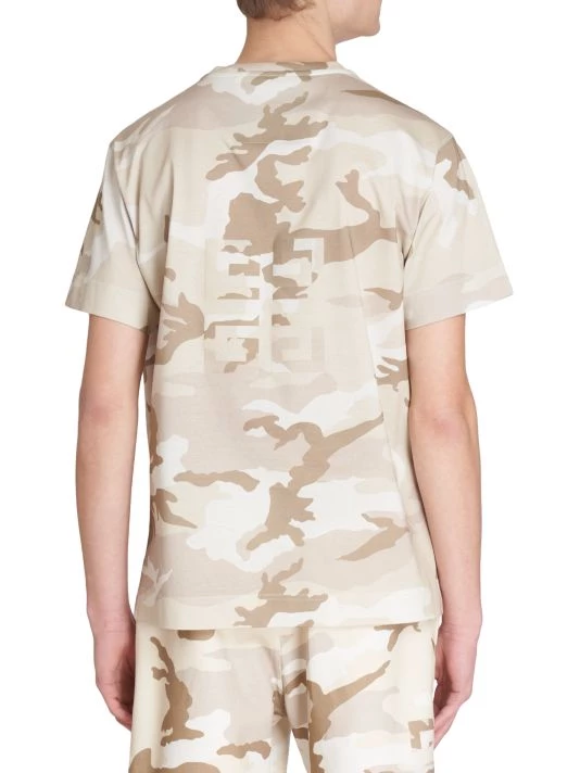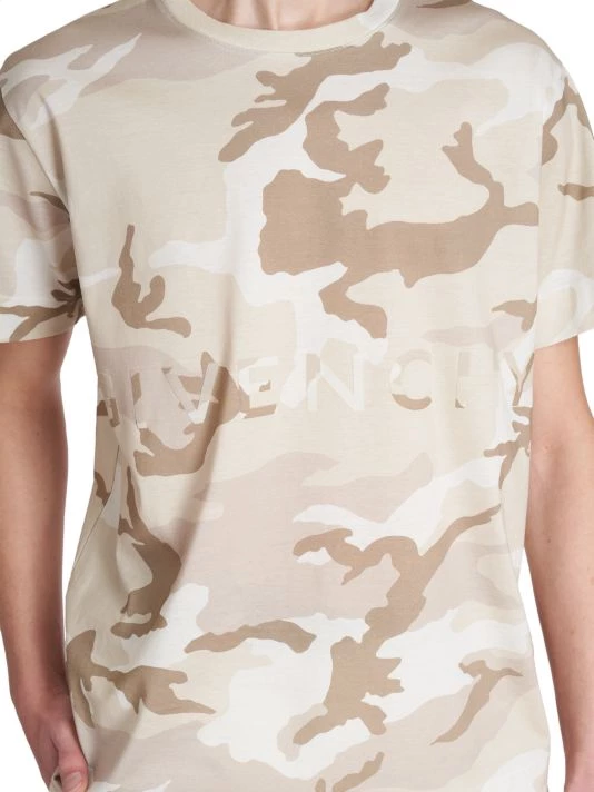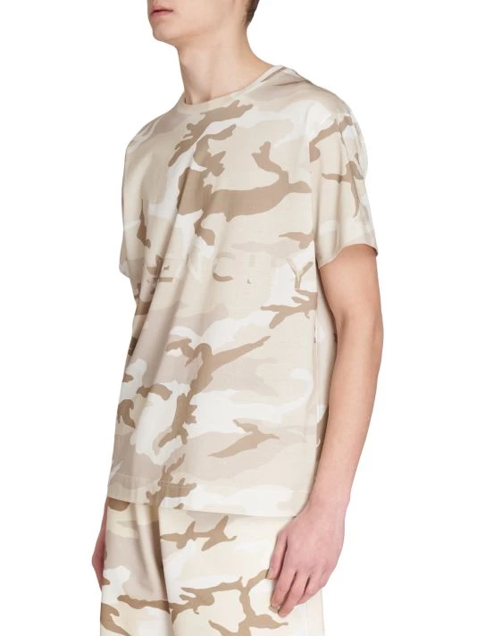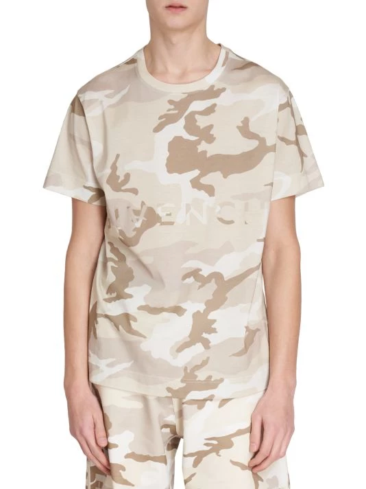 This Givenchy shirt features a light camo pattern with the logo layered across the chest.