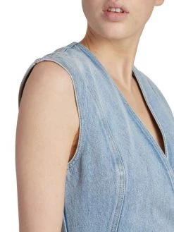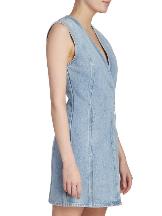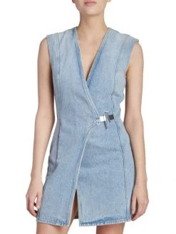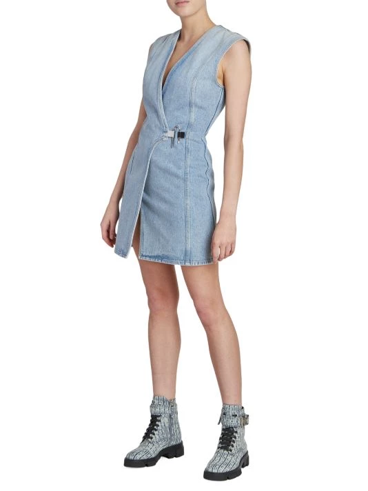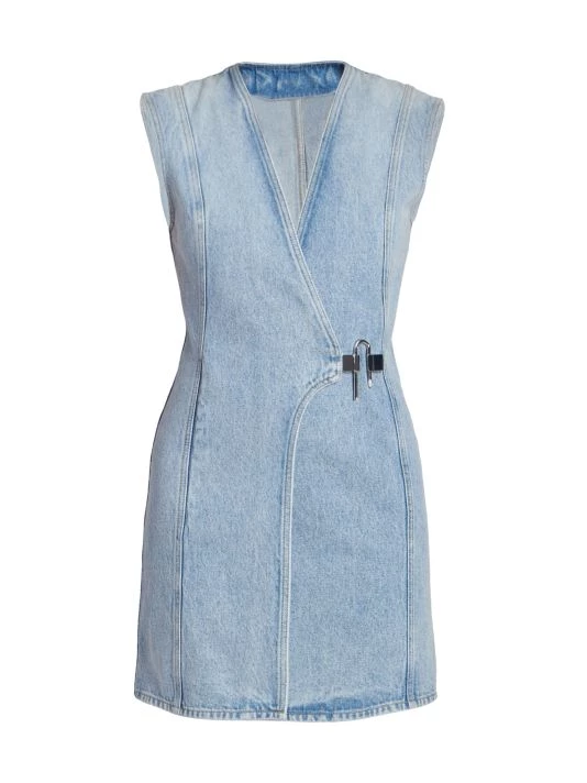 Made of cotton denim, Givenchy’s sleeveless wrap minidress is detailed with the label’s signature U-lock closure at the side.