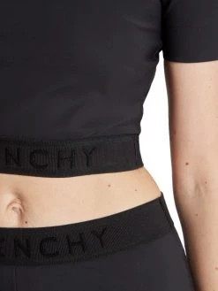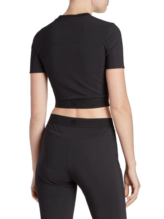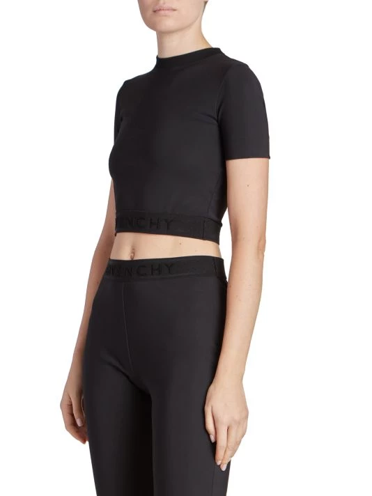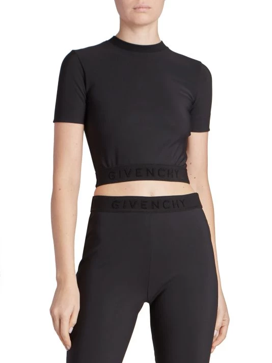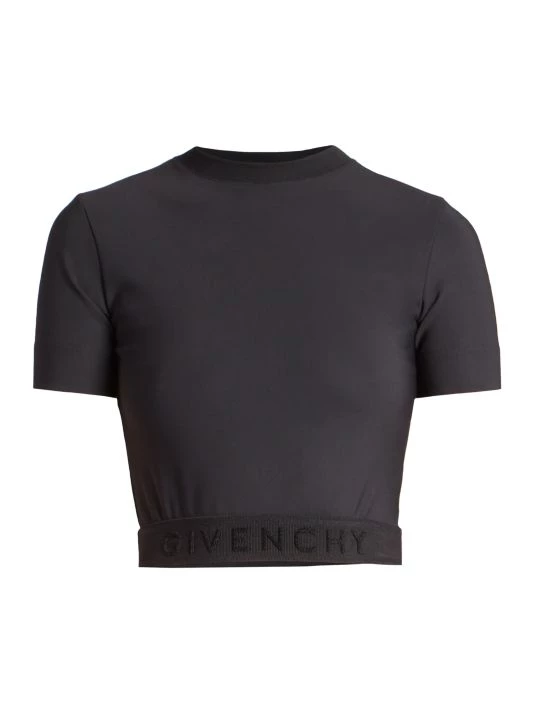 Cut in a cropped silhouette, this thin jersey stretch T-shirt is complete with a banded jacquard logo hem.