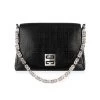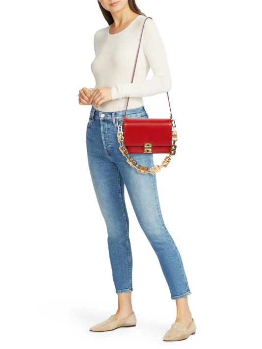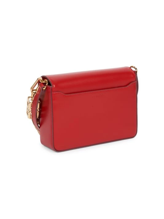 A custom logo-crafted cube-shaped chain embellishes this medium crossbody bag.