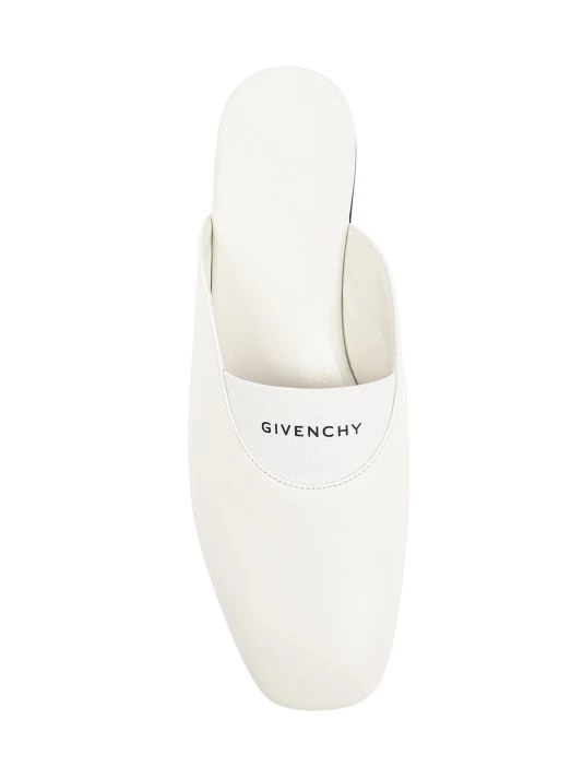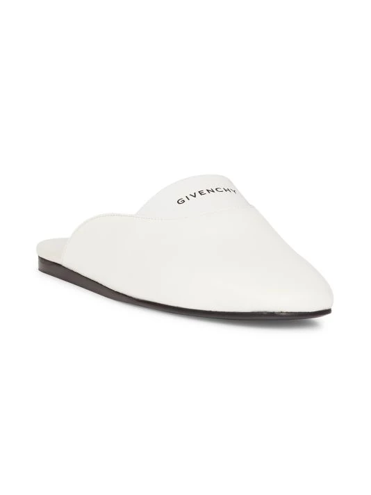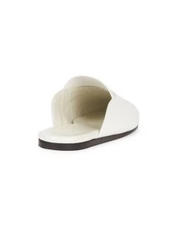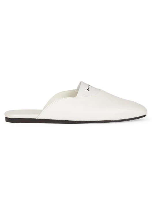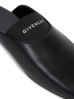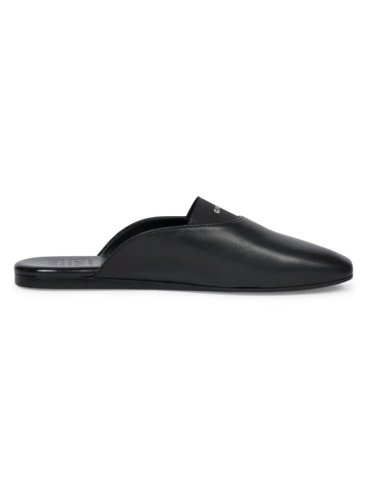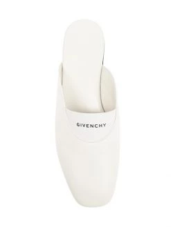 Printed with a graphic logo, these mules have a chic square toe and minimalist, refined look.