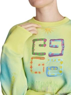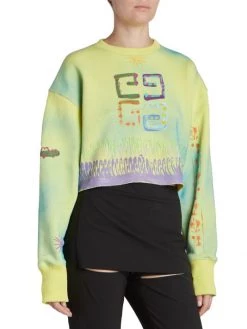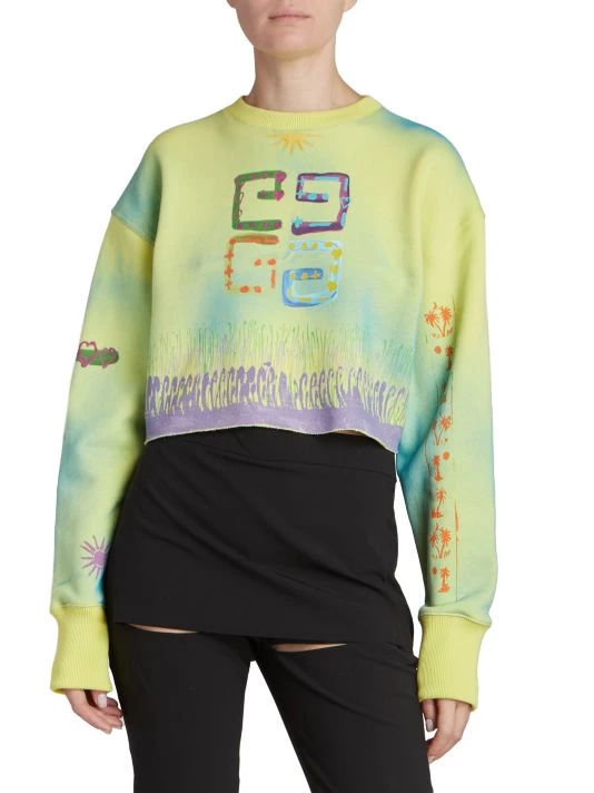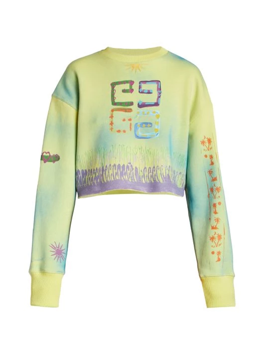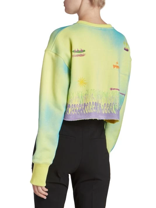 Cut in a cropped silhouette, this dyed crewneck sweatshirt offers a logo at chest and scattered illustrated graphics.