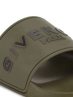 These classic rubber slides feature embossed Givenchy logo motifs on the wide straps.