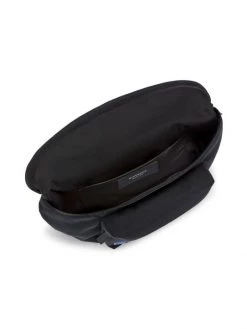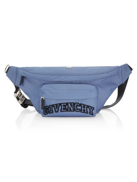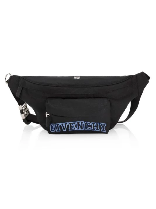 ONLY AT SAKS. This belt bag features a rubberized embossed logo across the front pocket accented by a silvertone branded buckle.