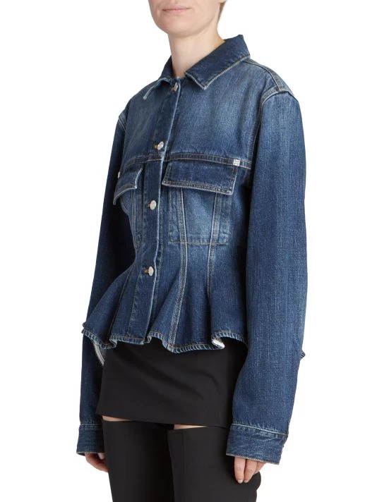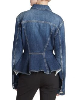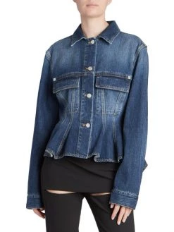 Crafted of pure denim, this classic jacket is elevated by a flared peplum hem.