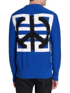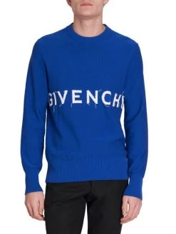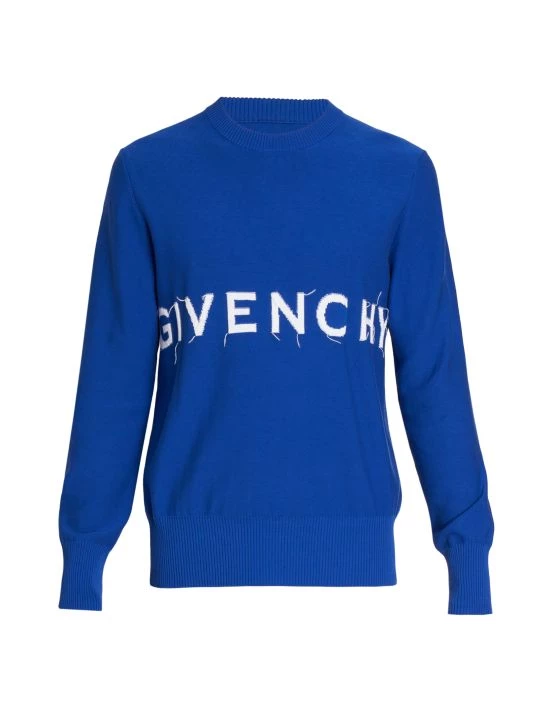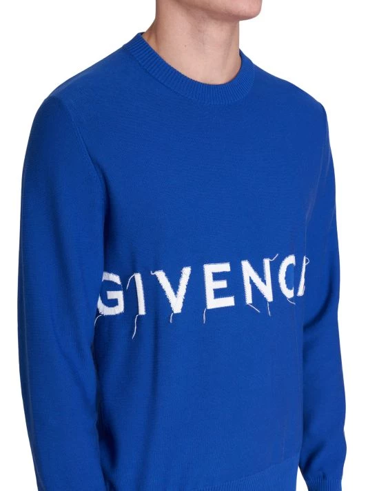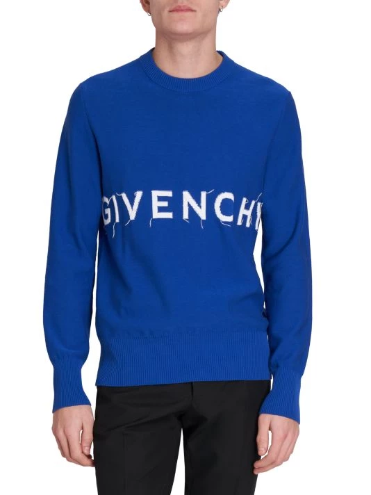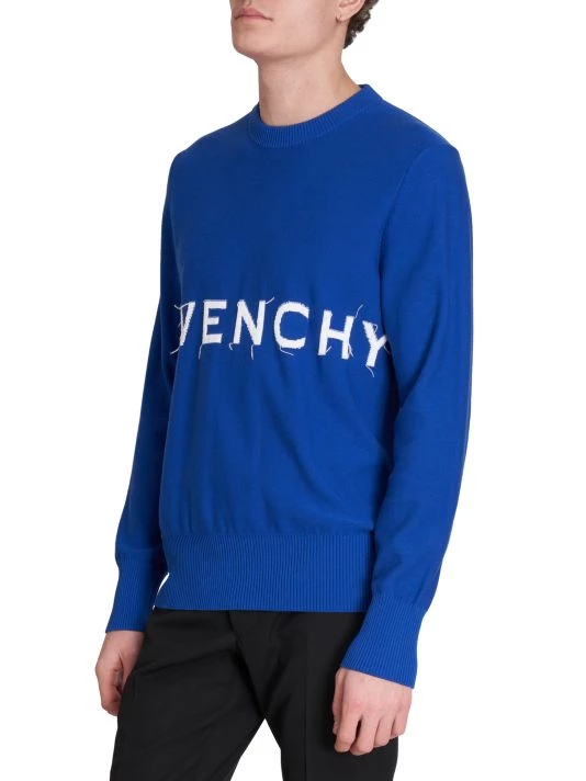 This ribbed crewneck sweater features a frayed embroidered logo.