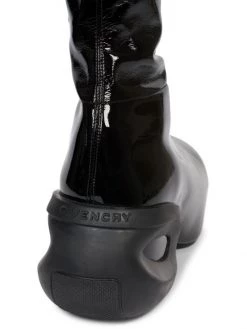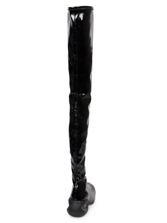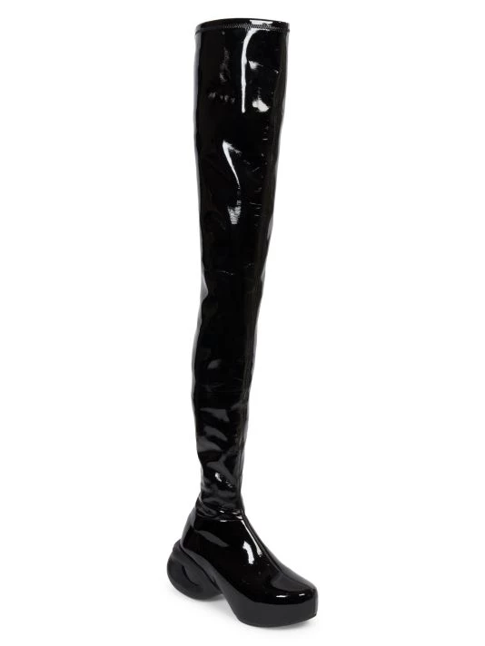 Crafted from glossy latex, these statement over-the-knee boots feature a wearable molded rubber platform sole.