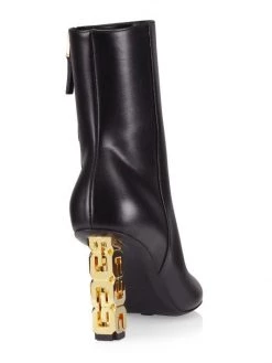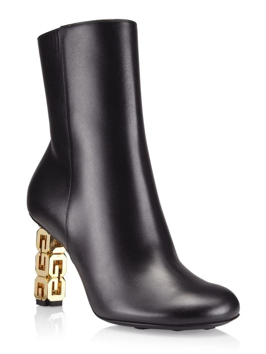 Givenchy’s ankle boots are elevated by a sculptural G Cube heel. Made in Italy, this statement pair is crafted of smooth leather.