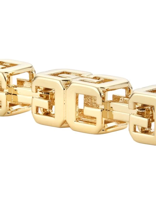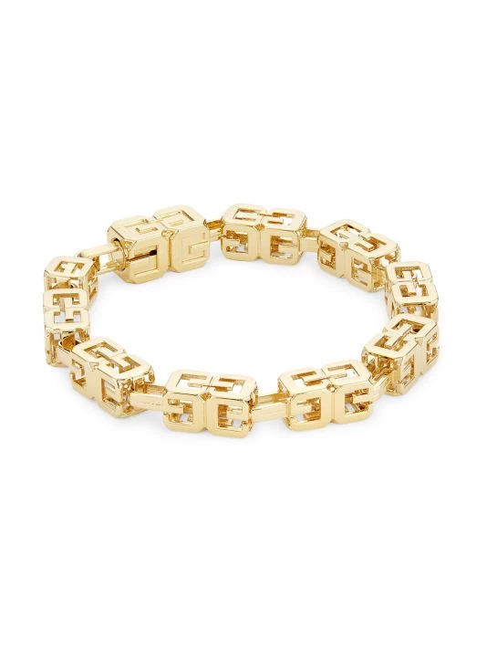 Evoking a modern edge, Givenchy’s box chain bracelet is handcrafted with G Cube logo detailing. This Italian-made piece is crafted of yellow goldtone brass.