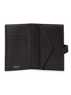 The G-Essentials wallet from Givenchy is crafted of 4G-embossed leather with a printed logo signature on the front.