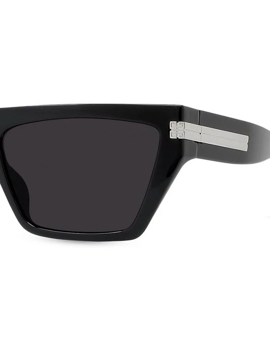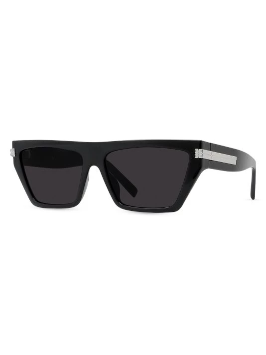 Shiny black injected sunglasses are detailed with silvertone 4 G’s logo on the temples.