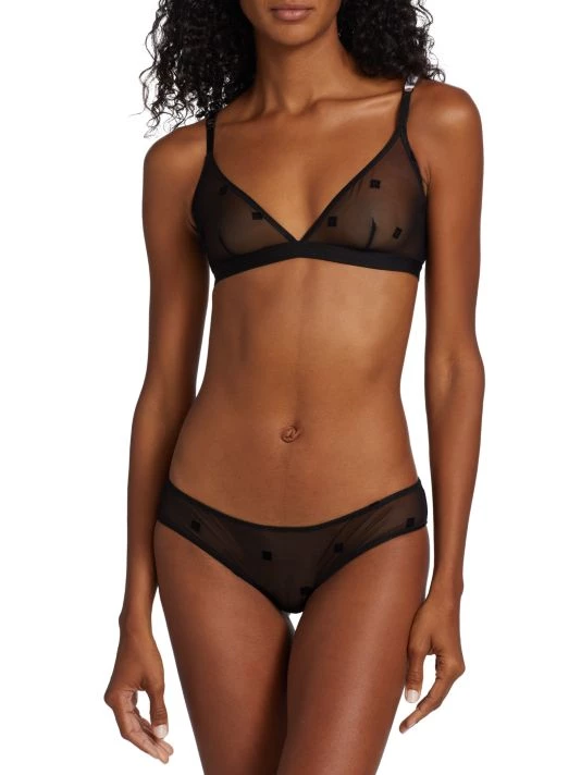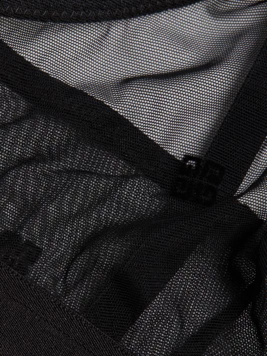 This Givenchy bralette is crafted of jacquard mesh featuring the brand’s signature 4G motif. A single contrast strap elevates this classic V-neck style.
