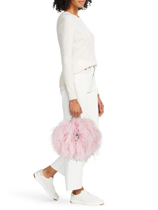 Crafted of genuine ostrich feathers, the Kenny bag from Givenchy boasts G Cube chain top handles with a signature 4G padlock.