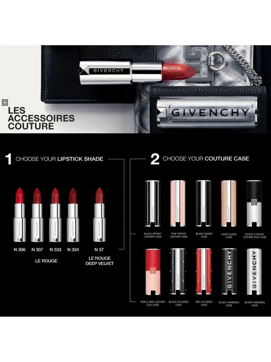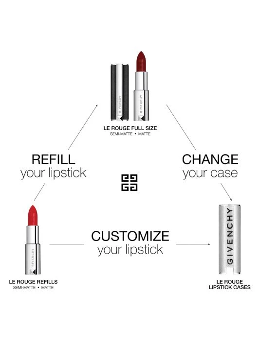 To customize your Le Rouge Deep Velvet Matte Lipstick Refill, pair it with a customized reusable lipstick case from Givenchy (sold separately). Choose from 10 runway-inspired designs, and complete your couture makeup look.