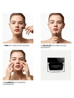 After removing all traces of makeup from the face, warm a small amount of the lightweight moisturizer in the hands. Apply in upward strokes to the entire face. With fingertips, apply gentle smoothing pressure from the center outwards. Apply morning and/or evening as part of Le Soin Noir Skincare Routine.Refill Product Instructions: To replace Le Soin Noir Cream, remove the refill by hand or by placing the spatula in the small notch and turning it upwards. Insert the new refill by clipping it into the notch.