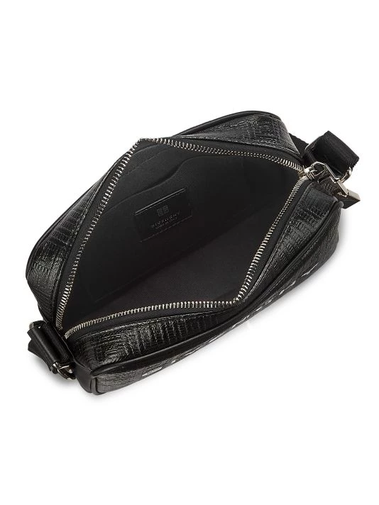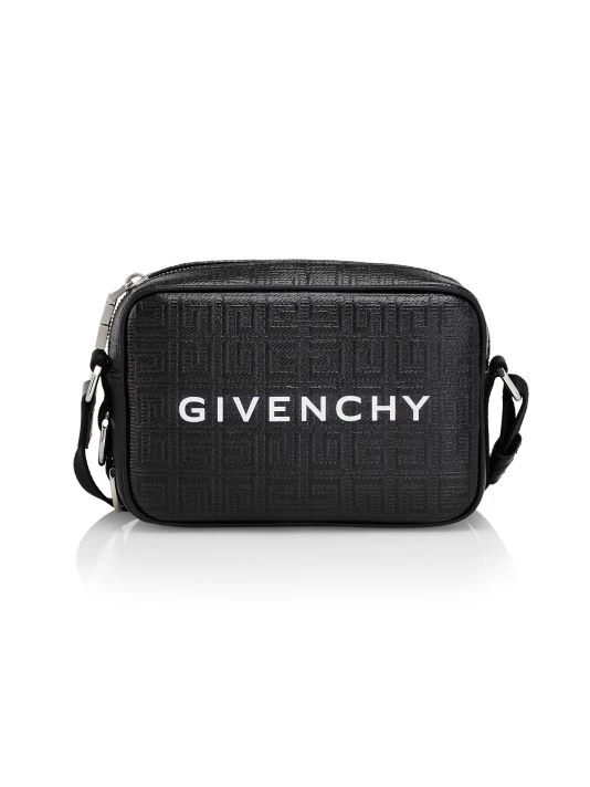 Crafted of leather, this camera shoulder bag by Givenchy is embossed with the label’s signature monogram print.