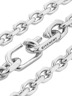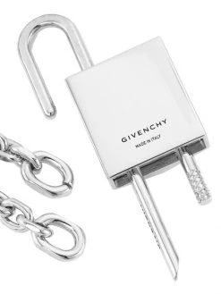 Crafted of brass, this chainlink necklace by Givenchy features an engraved lock pendant lending the piece an industrial feel.