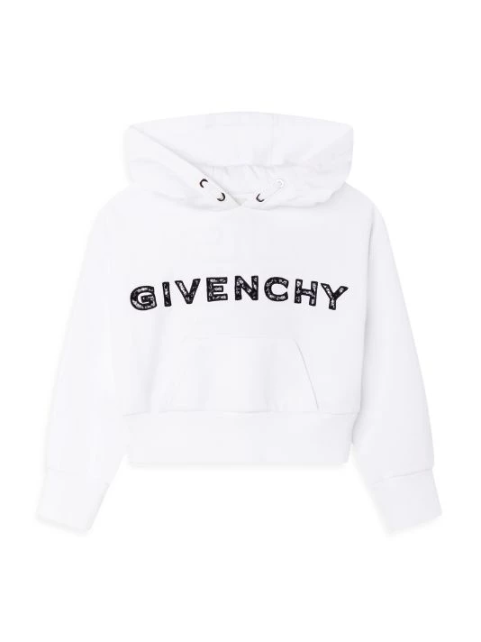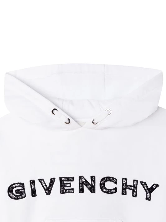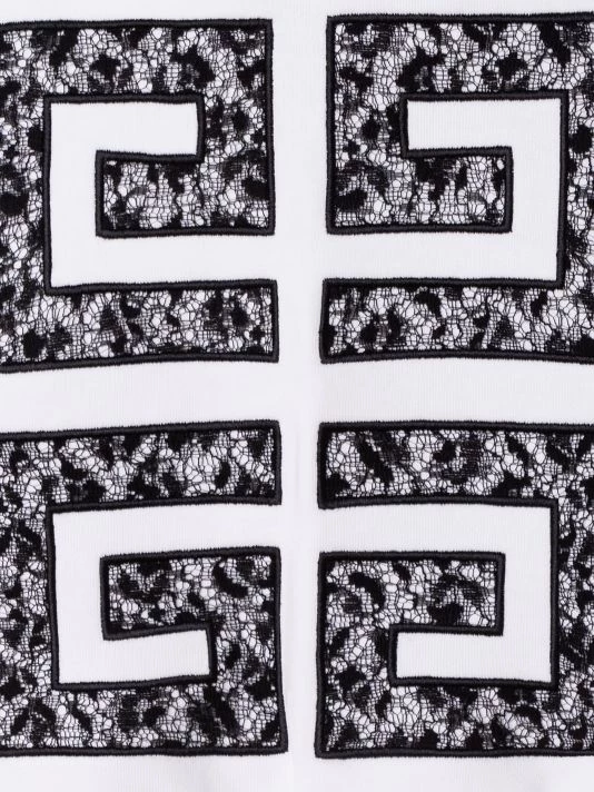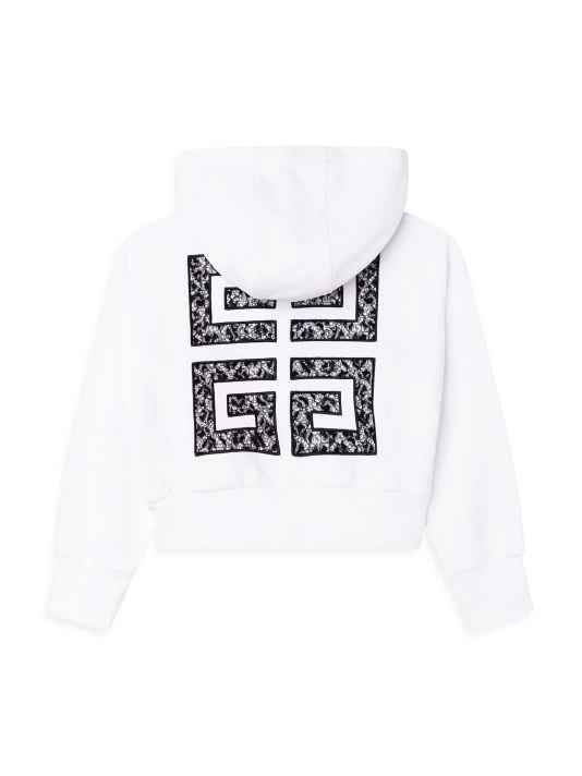 This fleece-lined hoodie features Givenchy logo lace embroidery on the front and the signature four G motif in lace embroidery on the back.