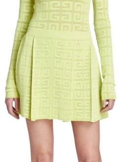 This mini skirt is detailed with a logo knit pattern and soft pleats.
