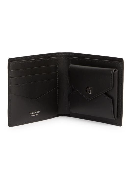Crafted of smooth leather, this bifold wallet sports the Givenchy logo on the outside.
