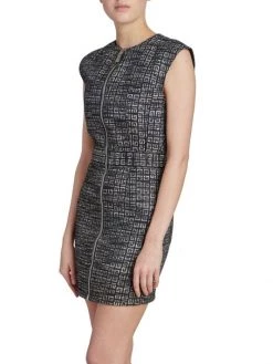 Adorned with an allover logo pattern, this Givenchy minidress is designed with cap sleeves and a full zipper front.