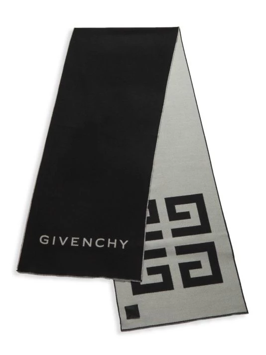 This wool-blend scarf features the brand’s logo.