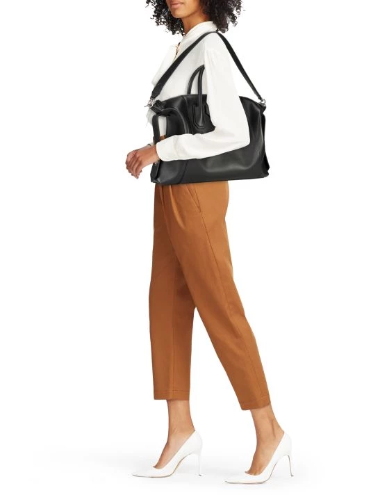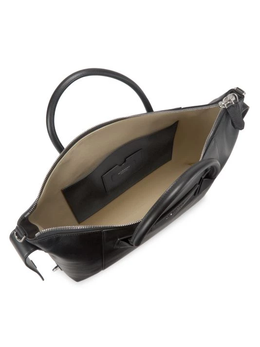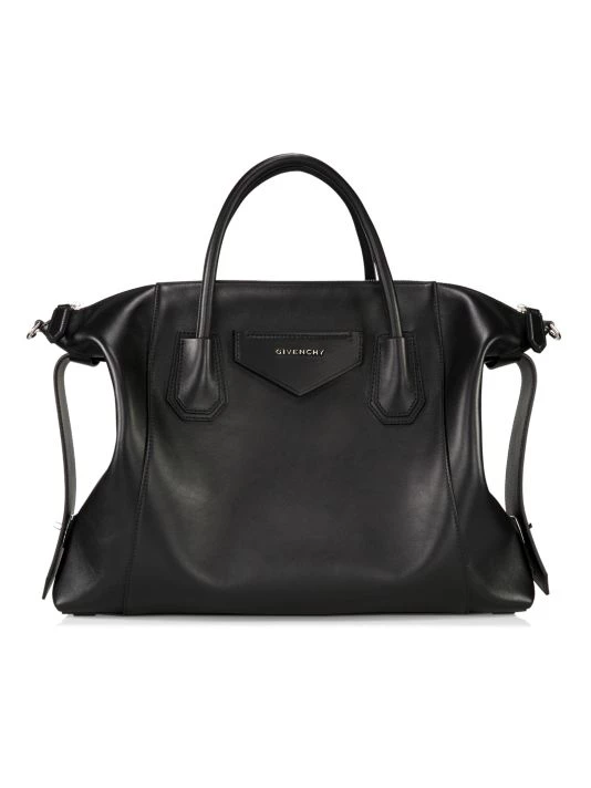 Givenchy’s Antigona satchel is crafted of calfskin leather, featuring a soft trapezoid silhouette with a spacious interior and removable shoulder strap.