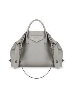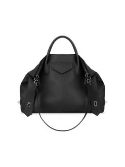 Crafted of supple leather, this slouchy tote has turnlock tab trim at the sides to alter the shape of this piece.
