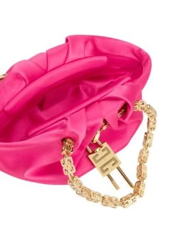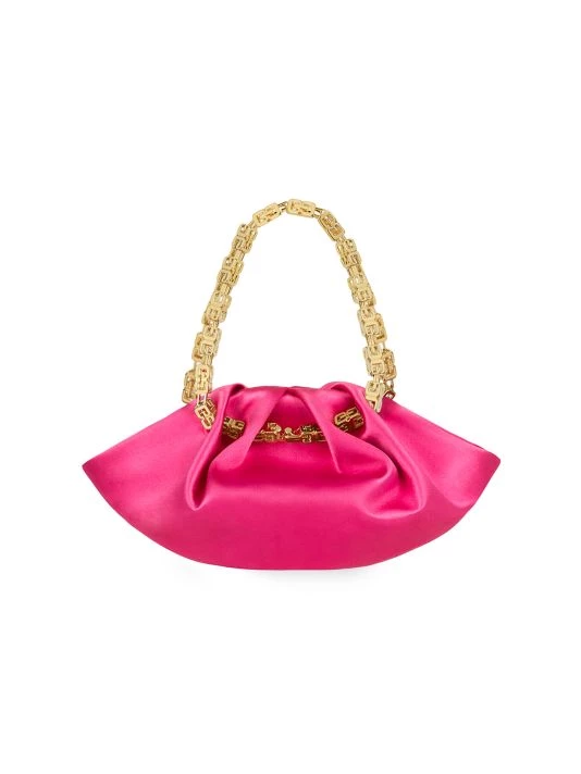 Made in Italy, Givenchy’s mini Kenny bag flaunts a ruched satin construction. This piece is highlighted with the signature 4G padlock and logo chain handle.