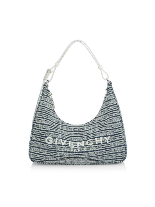 The Moon Cutout bag by Givenchy is crafted of bleached denim with a raised 4G logo motif. Made in Italy, this piece is highlighted with the signature bold logo.