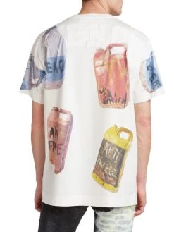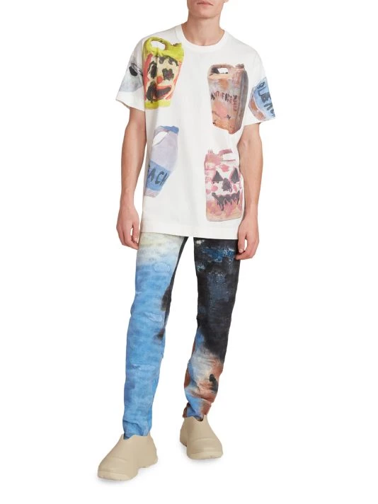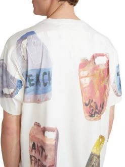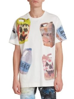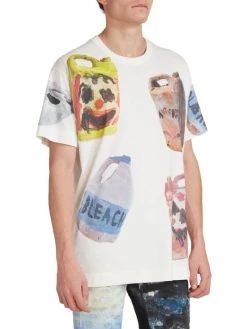 A motif of various warped plastic containers featuring clowns decorates this Givenchy T-shirt.