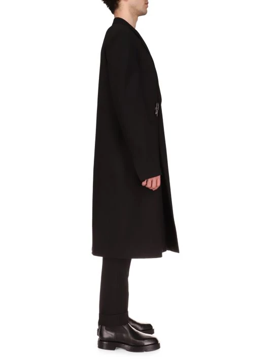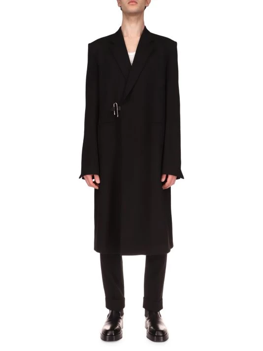 Stunning wool coat with classic tailoring and a refreshing padlock closure.